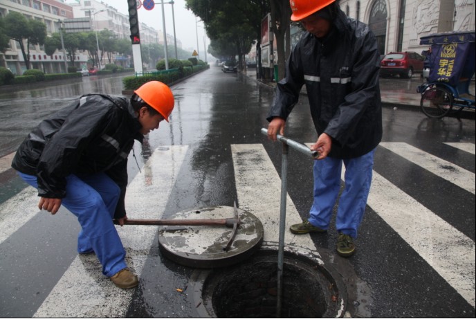 10月13日,水務(wù)集團(tuán)工作人員冒雨對(duì)城區(qū)供水閥門(mén)與水表進(jìn)行檢查。為全力確保曲藝節(jié)與紡博會(huì)期間供水安全,水務(wù)集團(tuán)計(jì)劃對(duì)城區(qū)350只閥門(mén)、8000只水表、497個(gè)消火栓進(jìn)行全面檢查;同時(shí)為保證供水水質(zhì),集團(tuán)于9月29日開(kāi)始對(duì)城區(qū)56平方公里內(nèi)的供水管網(wǎng)進(jìn)行大規(guī)模沖洗。